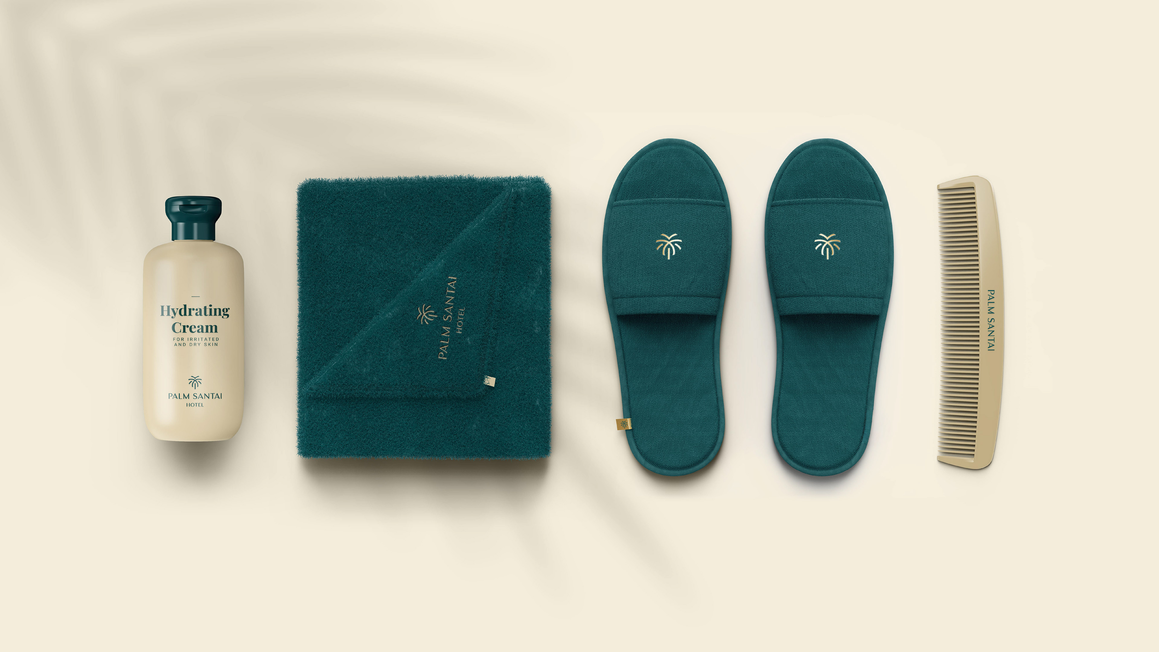 Surrounded by palm trees that sway with the ocean breeze, Its modern design blends with natural textures and soft tropical colors.Guests wake up to the sound of waves and the scent of salt in the air, Each room is made for comfort, with a calm and relaxing atmosphere, The beachfront view is perfect for unwinding or watching the sunset, Palm Santai Hotel welcomes everyone with warm smiles and island charm.